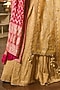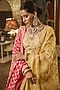 Featuring a honey yellow lehenga in lucknowi georgette base with gota patti and moti embroidery. It is paired with a matching blouse and an organza jaal dupatta.