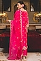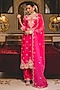 Surbhi Shah presents a hot pink kurta in pure spun silk base with anchor and pearl work. It is paired with pants and a dupatta having anchor pearl work. Accentuate with dangler earrings and heels for festive occasions.