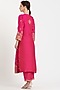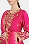 Featuring a hot pink shaded kurta in pure spun silk base with hand embroidery. It is paired with matching pants and a pure organza scalloped dupatta.