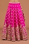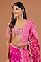 Featuring a hot pink lehenga in silk base with marori, zardosi and pearl work. It is paired with an embroidered blouse and a dupatta. Accentuate with statement earrings and heels for a wedding or engagement ceremony.