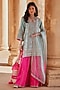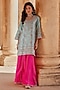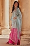 Featuring a sea blue kurta in spun silk base with gota and marori work. It is paired with hot pink sharara pants and a silk organza shaded dupatta. Accentuate it with statement jewellery and heels for a festive occasion, wedding or engagement ceremony.