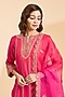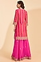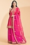 Featuring a strawberry red kurta in spun silk and organza base with patch work. It is paired with hot pink sharara pants and a dupatta. Accentuate it with statement earrings and heels for festive or wedding ceremonies.