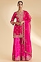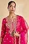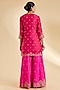 Featuring a strawberry red kurta in spun silk base with marori and sequins work. It is paired with hot pink sharara pants and a dupatta. Accentuate it with statement earrings and heels for festive occasions or sangeet ceremony.