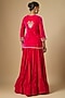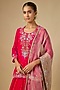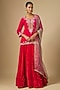 Featuring a hot pink kurta in velvet base with antique zardosi work. It is paired with a skirt and a dupatta. Accentuate it with statement jewellery, a clutch and block heels for a wedding, sangeet or cocktail ceremony.