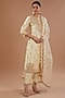 Featuring an ivory kurta in pure spun silk base with marori and gota work. It is paired with matching pants and a dupatta. Perfect wear for an engagement or a wedding ceremony.
