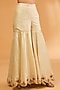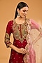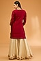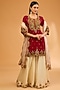 Featuring a red kurta in spun silk base with marori and zardosi embroidery. It is paired with ivory sharara pants and an organza dupatta. Accentuate it with statement earrings and heels for a festive occasion or pooja ceremony.