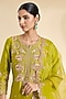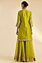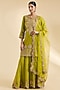 Featuring a lime green kurta in spun silk base with sequins and marori work. It is paired with organza sharara pants and a dupatta. Accentuate it with gold jhumkas and block heels for weddings, family gatherings or mehendi ceremonies.