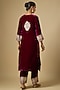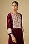 Featuring a magenta in velvet base with tilla work. It is paired with pants. Accentuate it with statement earrings and heels for any festive occasion, wedding or engagement ceremony.