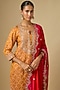 Featuring a mango and rani pink kurta in velvet base with marori and sequins work. It is paired with pants and a dupatta. Accentuate it with statement earrings and heels for any festive occasion or wedding ceremony.