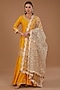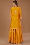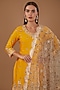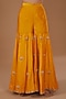 Featuring a mango yellow kurta in pure spun silk base with marori gota patti work. It is paired with sharara pants and an embroidered dupatta. Accentuate the outfit with dangler earrings and heels for a festive look.