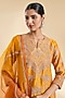 Featuring a mango yellow kurta in spun silk base with gota and marori work. It is paired with sharara pants and a dupatta. Accentuate it with gold jhumkas and block heels for weddings, family gatherings or haldi ceremonies.