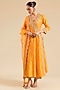 Featuring a mango yellow angrakha kurta in spun silk base with marori work. It is paired with pants and a dupatta. Pair this outfit with statement chandbalis and embellished juttis for a festive-ready look.