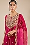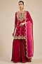 Featuring a maroon kurta in chanderi base with sequins, marori and pearl work. It is paired with sharara pants and a dupatta. Accentuate it with statement jhumkas, a richly embellished potli bag and classic embroidered heels for a stylish ensemble, ideal for wedding festivities or vibrant festive celebrations.