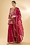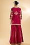 Featuring a maroon kurta in spun silk base with marori and gota work. It is paired with sharara pants and a dupatta. Accentuate it with kundan polki jewellery and embellished heels for a sangeet or wedding ceremonies.