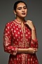 Featuring a maroon peplum anarkali in pure spun silk base with hand embroidery. It is paired with contrasting tissue pants.
