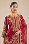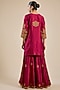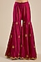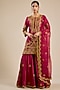 Featuring a maroon kurta in spun silk base with marori work. It is paired with sharara pants and a dupatta. Accentuate it with statement jhumkas, a richly embellished potli bag and classic embroidered heels for a stylish ensemble, ideal for wedding festivities or vibrant festive celebrations.