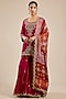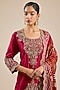 Featuring a maroon kurta in spun silk base with zardosi work. It is paired with sharara pants and a dupatta. Accentuate it with statement jhumkas, a richly embellished potli bag and classic embroidered heels for a stylish ensemble, ideal for wedding festivities or vibrant festive celebrations.