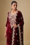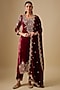 Featuring a maroon kurta in velvet base with marori and sequins embroidery. It is paired with pants and a dupatta. Accentuate it with polki jewellery and heels for festive occasions or sangeet ceremony.