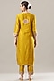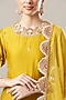 Featuring a mustard-green kurta in pure spun silk base with hand embroidery. It is paired with matching pants and a pure organza scalloped dupatta.