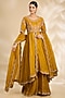 Featuring a mustard kurta in organza base. It is paired with sharara pants and a dupatta. Accentuate it with statement jewellery and heels for a festive occasion, wedding, sangeet or engagement ceremony.