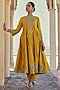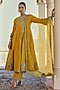 Featuring a mustard anarkali in spun silk base. It is paired with pants and a silk organza dupatta. Accentuate it with statement jewellery and heels for a festive occasion, haldi or engagement ceremony.