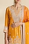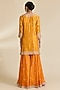 Featuring a mustard kurta in spun silk base with gota cheed work. It is paired with sharara pants and a dupatta. Accentuate it with dangler earrings and heels for festive occasions, haldi or wedding ceremonies.