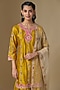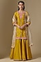 Featuring a mustard kurta in spun silk base with zardosi and patchwork. It is paired with sharara and a dupatta. Accentuate it with jhumkas and embellished juttis for a graceful look, Ideal for traditional celebrations, festive gatherings and wedding functions.