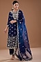 Featuring a navy blue kurta in pure spun silk base with pearl work. It is paired with pants and a dupatta. Accentuate it with statement jewellery and heels for a wedding or festive occasion.