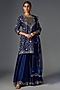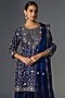 Featuring a navy blue kurta in pure spun silk base with marori and zardosi work. It is paired with sharara pants and a dupatta. Accentuate with heels and earrings for a festive occasion or a wedding ceremony.