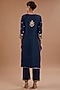 Navy Blue Pure Spun Silk Zardosi Embroidered Kurta Set