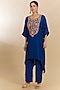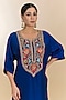 Featuring a navy blue kaftan in raw silk base with resham work. It is paired with pants. Accentuate with statement jewellery and heels for festive occasions.