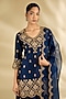 Featuring a navy blue kurta in spun organza base with marori work. It is paired with sharara pants and a dupatta. Accentuate it with statement earrings and block heels for a festive occasion or wedding ceremony.