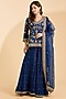 Featuring a navy blue kurta in spun silk and organza base with marori work. It is paired with sharara pants and a dupatta. Accentuate it with statement earrings and heels for festive or wedding ceremonies.