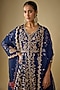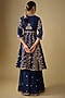 Featuring a navy blue peplum kurta in spun silk base with marori and sequins embroidery. It is paired with pants and a dupatta. Complete your festive or wedding look with dangler earrings, clutch and elegant heels.