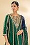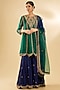 Featuring an emerald green kurta in spun silk base with zardosi work. It is paired with navy blue zardosi work sharara pants and a dupatta. Accentuate it with kundan polki jewellery and embellished heels for a sangeet, mehendi or wedding ceremonies.