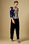Featuring a navy blue jacket in velvet base with zardosi work. Style with pants and embellished heels for a graceful look, perfect for festive gatherings or after party.