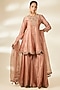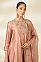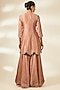 Featuring an old rose kurta in spun silk base with floral and zardosi work. It is paired with organza sharara pants and a dupatta. Accentuate it with polki jewellery, a clutch and embellished heels for a wedding or sangeet ceremony.