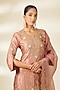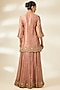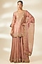 Featuring an old rose kurta in spun silk base with marori and zardosi work. It is paired with organza sharara pants and a dupatta. Accentuate it with polki jewellery, a clutch and embellished heels for a wedding or sangeet ceremony.