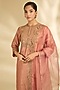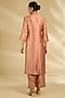 Featuring an old rose kurta in spun silk base with mirror work. It is paired with pants and a dupatta. Accentuate it with statement earrings and block heels for a festive occasion or wedding ceremony.