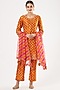 Featuring an orange bandhej kurta in pure spun silk base with hand embroidery. It is paired with matching pants and a pure organza scalloped dupatta having leheriya print.