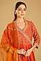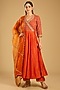 Featuring an orange kurta in spun silk base. It is paired with pants and a dupatta. Style it with statement jewellery, heels and a potli bag for a festive, sangeet or engagement ceremony.