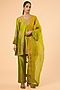 Featuring a parrot green kurta in spun silk base with marori and sequins work. It is paired with pants and a dupatta. Accentuate it with polki jewellery and block heels for festive celebrations or mehendi ceremony.