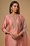Featuring a peach kurta in chanderi base with marori and sequins work. It is paired with sharara pants and a dupatta. Elevate it with statement gold jhumkas and metallic gold heels for a festive occasion or engagement ceremony.