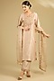 Featuring a pearl white kurta in spun silk base with mirror work. It is paired with pants and a dupatta. Accentuate it with statement earrings and block heels for a festive occasion or wedding ceremony.