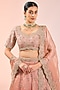 Featuring a pink lehenga in satin organza base with zardosi work. It is paired with an embroidered blouse and a dupatta. Accentuate statement earrings and heels for a wedding or engagement ceremony.