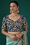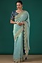 Featuring a powder blue saree in pure kora silk base with hand embroidery. It is paired with an embroidered blouse. Accentuate it with statement jewellery and heels for a wedding, sangeet or engagement ceremony.