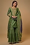 Featuring a powder sage green kurta in chanderi base with sequins and marori work. It is paired with sharara pants and a dupatta. Elevate it with statement gold jhumkas and metallic gold heels for a festive occasion or engagement ceremony.