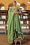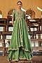 Featuring a powder sage green high-low anarkali in silk organza base with marori and sequins work. It is paired with sharara pants and a dupatta. Accentuate it with statement jewellery and heels for a festive occasion, wedding or engagement ceremony.