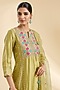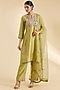 Featuring a powder yellow kurta in spun silk base with gota and marori work. It is paired with pants and a dupatta. Accentuate it with statement earrings and block heels for weddings, family gatherings or haldi ceremonies.