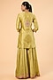 Featuring a powder yellow kurta in spun silk base with patch and zardosi embroidery. It is paired with sharara pants and a dupatta. Accentuate it with polki jewellery and heels for a wedding or haldi ceremony.